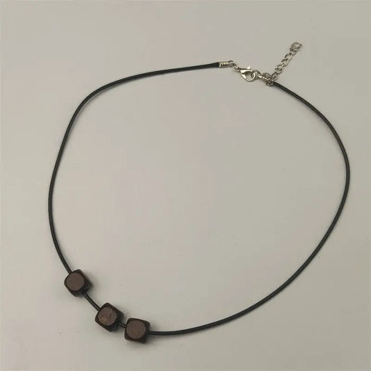 Bohemian Retro Style Black Braided Rope Leather Rope Wooden Bead Beaded Necklace