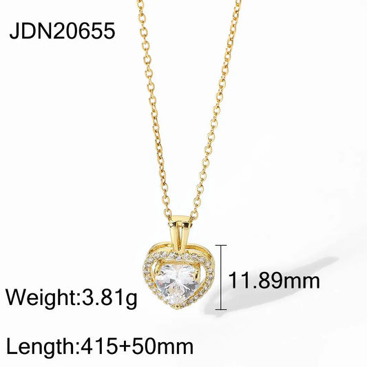 Silver Heart-shaped Zircon Necklace For Women