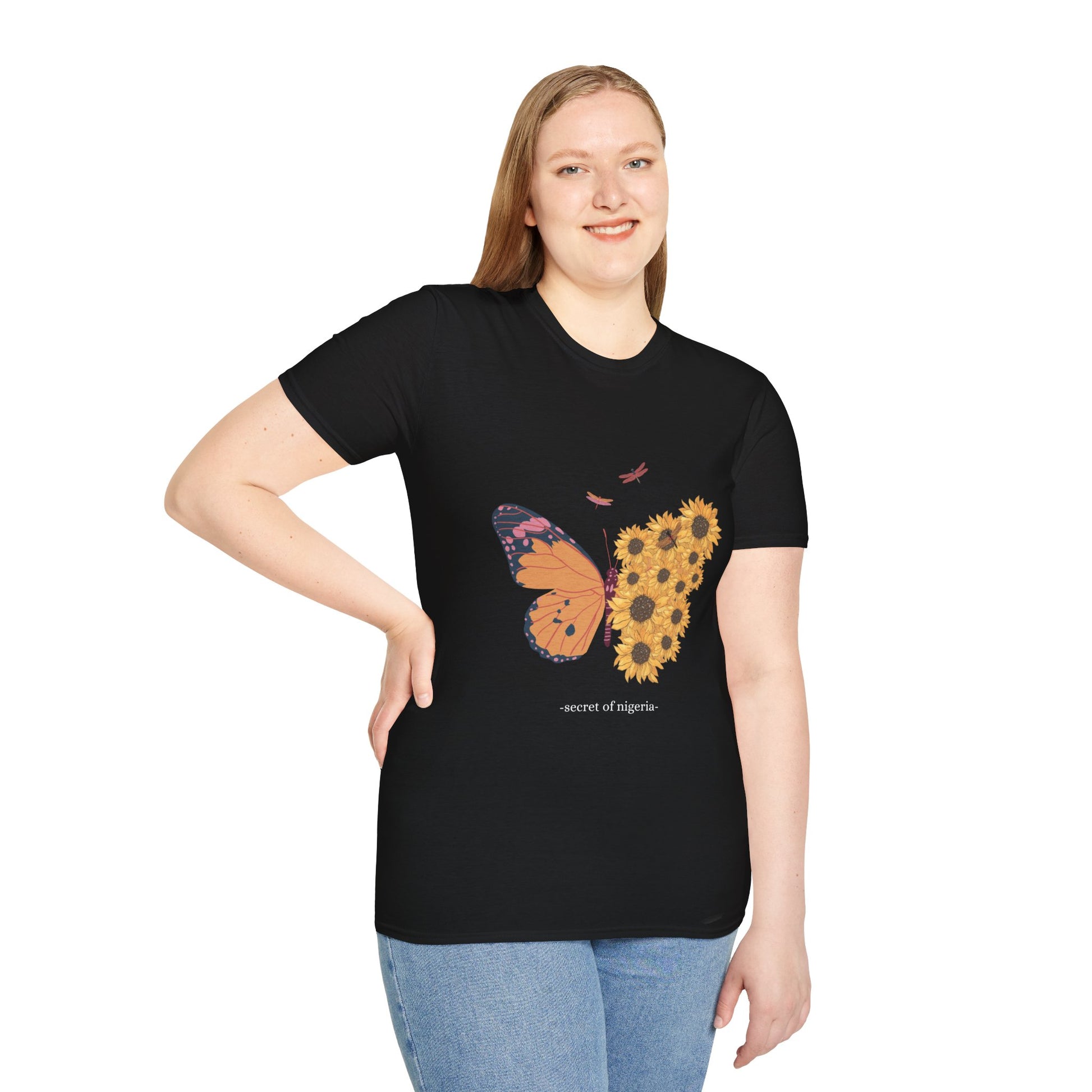 Butterfly and Sunflower Unisex Softstyle T-Shirt, Nature Lovers